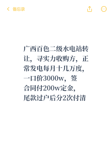 一站式水电站收购、托管、承包运营。要求:水电站年收入50万以上。有资源居间可谈。全国范围都可。