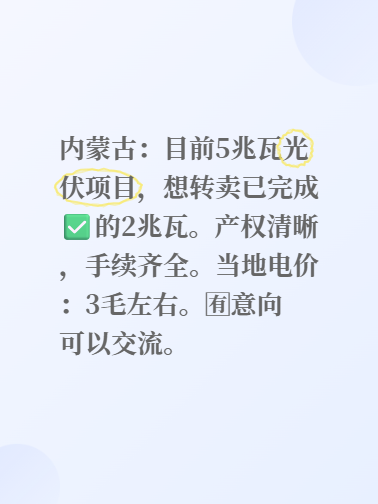内蒙古:目前5兆瓦光伏项目,想转卖已完成✅的2兆瓦。产权