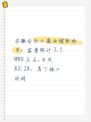 安徽合肥工商业储能项目,容量预计 3.5MWH 左右,分