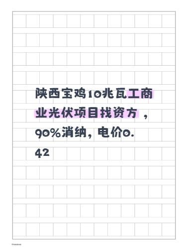 陕西宝鸡10兆瓦工商业光伏项目找资方 ,90%消纳,电价0.42
