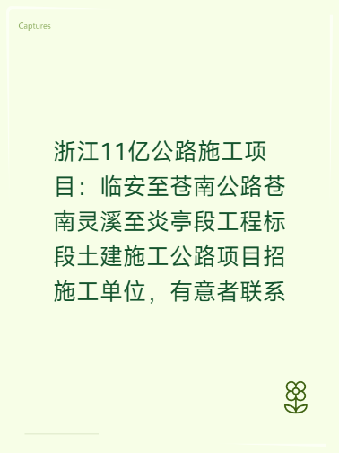 浙江11亿公路施工项目:临安至苍南公路苍南灵溪至炎亭段工程标段土建施工公路项目招施工单位,有意者联系