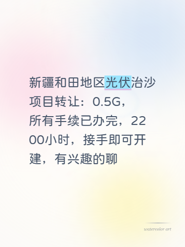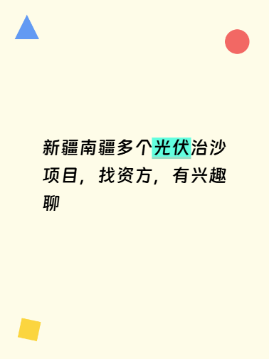 新疆南疆多个光伏治沙项目,找资方,有兴...