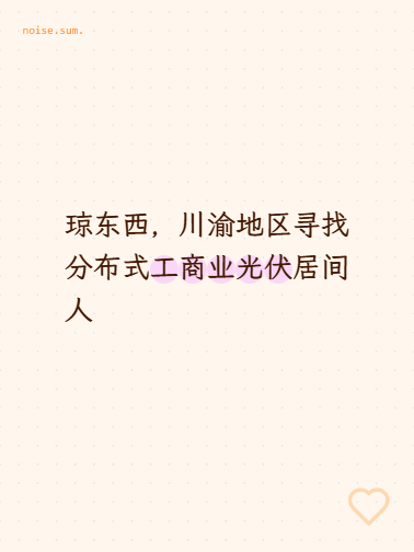 琼东西,川渝地区寻找分布式工商业光伏居...