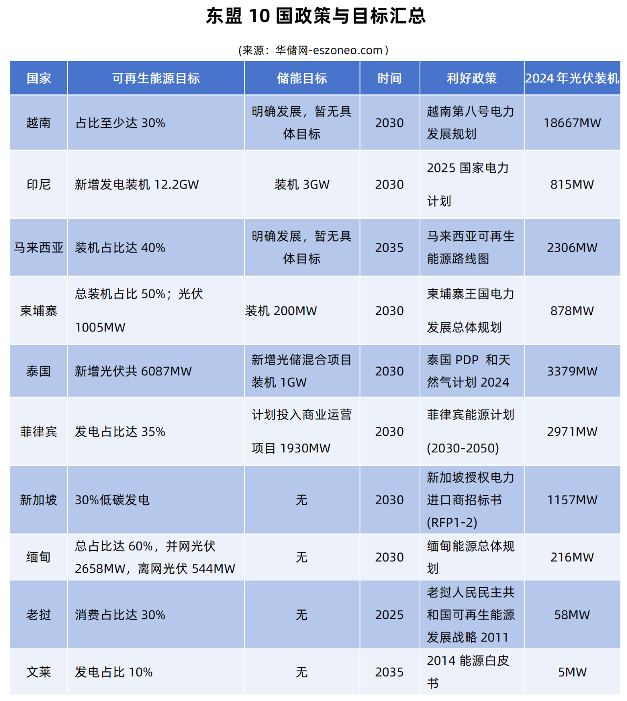 储能政策目标明确:印尼、泰国、柬埔寨;
