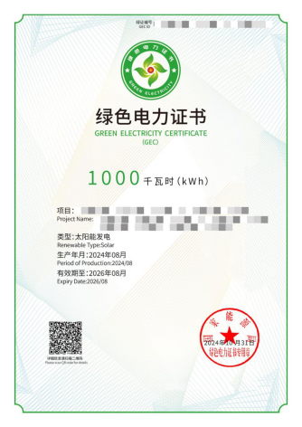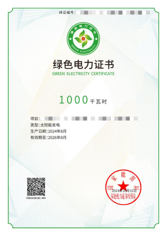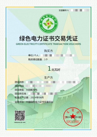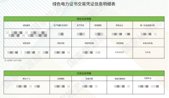 绿证交易凭证除了绿证记载的基本信息外,突出展示了购买方名称、购买绿证数量和对应的可再生能源电量。
