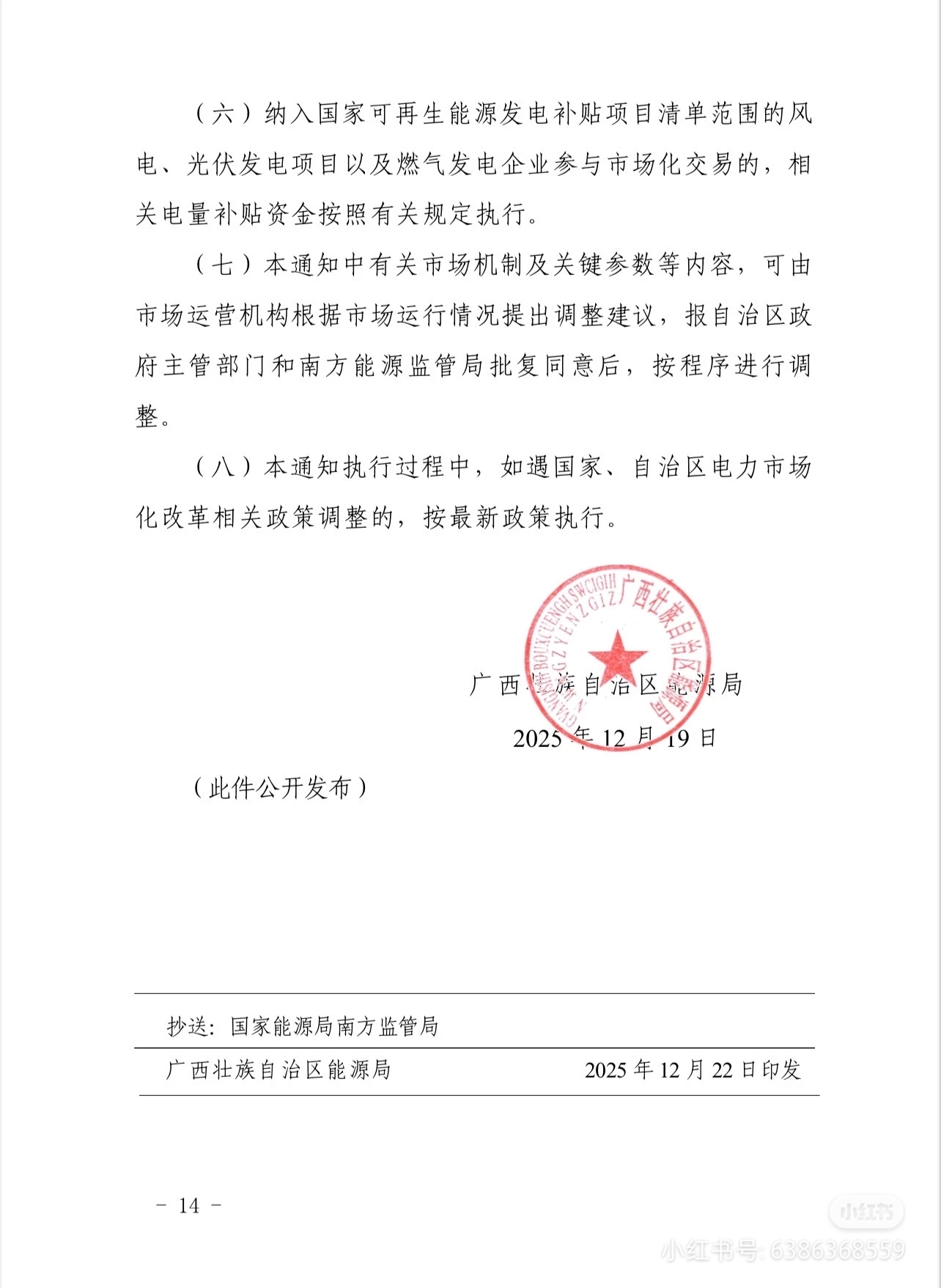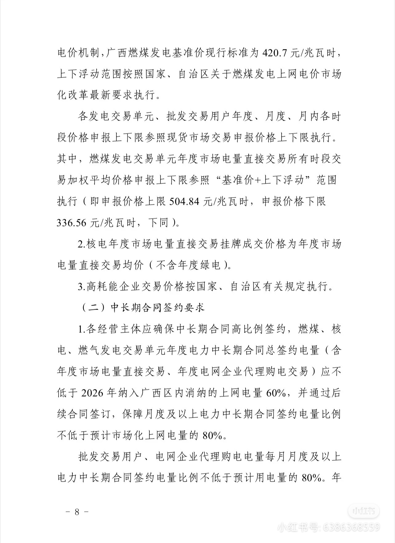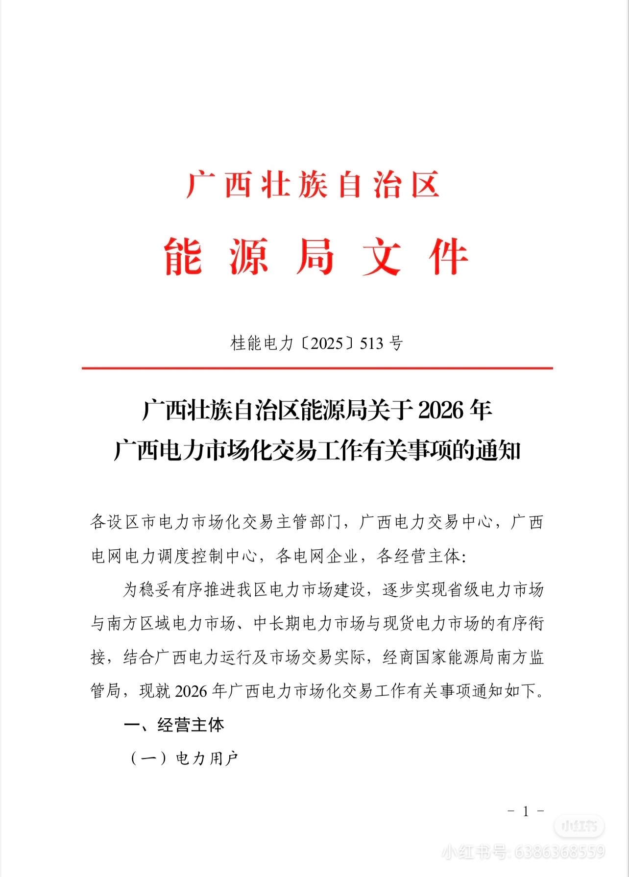 广西壮族自治区能源局关于2026年《广西电力市场化交易工作有关事项的通知》