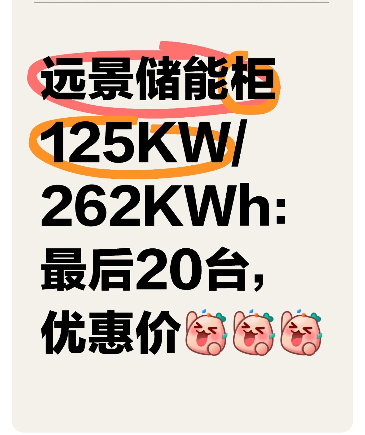 远景储能柜:125KW/262KWh,最后20台优惠价。联系人:陈先生 15738819457