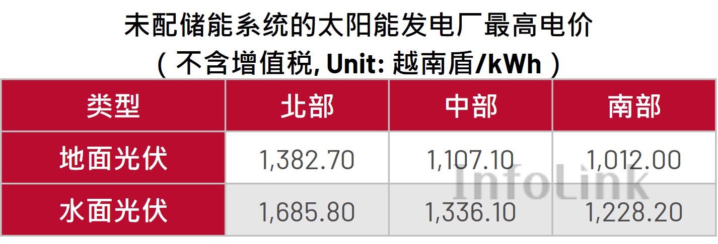 根据 2025 年 3 月生效的《58/2025/ND-CP 号议定》,越南政府对《电力法》中可再生能源与新能源发展的若干条款作出细化,授权工贸部制定分区域、分技术的电价政策。在该法令框架下,工贸部于 2025 年 4 月发布 988/QD-BCT 号决定,并配套 09/2025/TT-BCT 通告,在全国层面明确区分了“未配储能系统的太阳能发电厂”和“配备储能系统的太阳能发电厂”的最高上网电价。