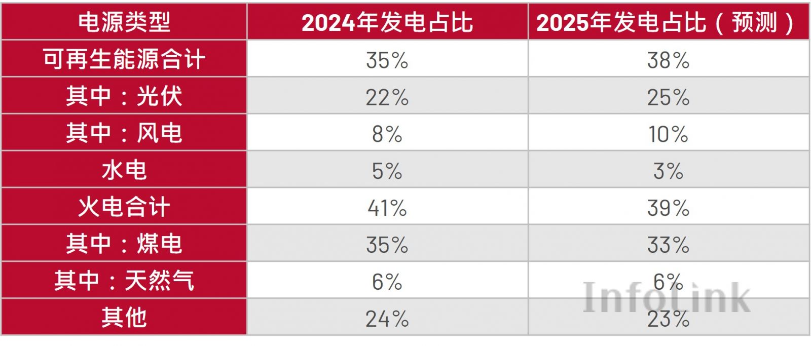 结合越南工贸部及 InfoLink 的测算,2025 年可再生能源在发电量结构中的占比预计将由 2024 年的约 35% 提升至约 38%,其中光伏从约 22% 升至约 25%,风电从约 8% 升至约 10%;同期火电发电占比则由约 41% 下降至约 39%。可再生能源出力占比的提高,使电网在高光照、高风速时段面临更大波动性,对调峰与备用容量的需求显著抬升,储能由“辅助配置”逐步演化为支撑高比例新能源并网与消纳的关键基础设施。